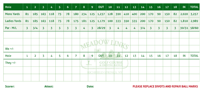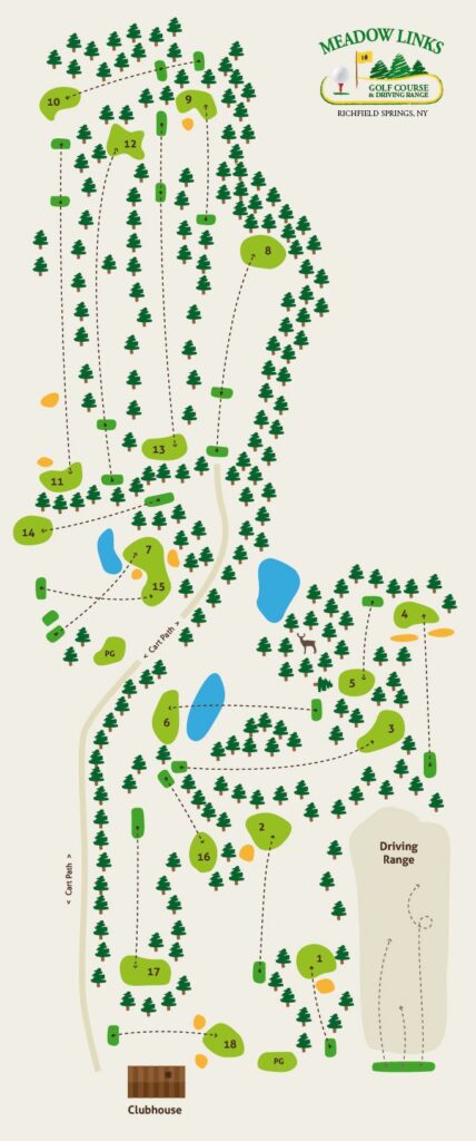 Meadow Links is a scenic and challenging 18 hole executive length golf course, set in the hills above historic Otsego Lake. We are located about 8 miles from Cooperstown, New York, on Allen’s Lake Road, between U.S. Route 20, Richfield Springs and New York State Route 80, Otsego Lake.