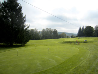 - Small practice green on the front nine, near the clubhouse and the first tee